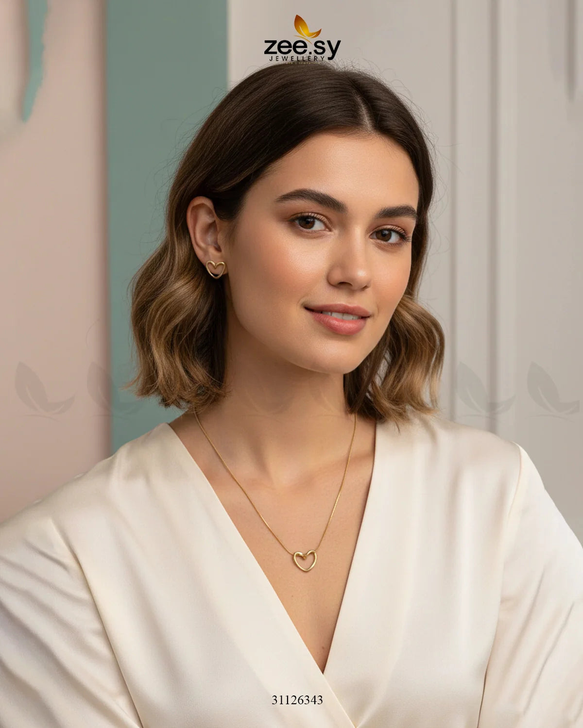 Synonyms/Secondary Keywords: Open heart necklace, minimalist heart jewelry, stainless steel set, sculptural pendant.